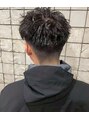ツイスパで動きしっかり出したスタイル。濡らしてワックス揉み込むだけで形になるから、朝のセットもかなり楽です。サイドと襟足はスッキリ刈り上げてるので清潔感も◎。トップはしっかり動き出る長さ残してるので、ラフでもキマります。