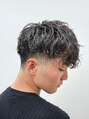 しっかり動きが出るパーマで、無造作でもキマるのがポイント。トップはボリューム出しつつ、サイドと襟足はスッキリ刈り上げてメリハリつけてます。