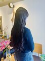 ロングヘアの質感をいかしながら重さをほどよく残した、まとまりやすいシルエットに♪フェイスラインには 軽さと動きが出るように、バングの部分に少しだけつなげてレイヤーを入れて、下ろしても巻いてもやわらかいニュアンスが出るスタイルにしました☆