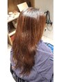 明るくなりやすいので暗めのグレージュに染めました。赤みが消えてグレー味をしっかりと感じる仕上がりです。透明感、ツヤ感もあります。
