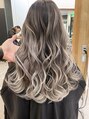 冬カラー外国人風バレイヤージュとウェーブ巻きホワイトベージュ