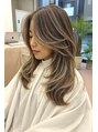 ブリーチ無しカラー/ハイレイヤーカット/ロングレイヤーカット/シャドールーツ/白髪ぼかしハイライト