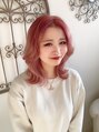 ミディアムレイヤー韓国風くびれヘアブリーチピンク