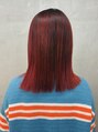 赤髪ミディアムルーツカラーダブルカラー暖色カラーブリーチ