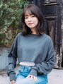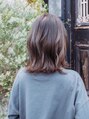 光に透けると透明感のあるブラウンカラーでナチュラルな雰囲気に仕上げています。カットは全体的にパツッとしたカットラインですが、顔周りに少しのレイヤーを入れることで重たくなりすぎない印象を与えてくれます。【】