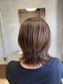 毛先に軽さを出したミディアムレイヤー。明るめのブラウンで、重たく見せずに軽やかな印象に。動きと透明感のあるスタイルで、自然体でもおしゃれに。大人ショート/大人ショートヘア/白髪染め/白髪ぼかし/脱白髪染め/明るい白髪染め/上品ショート/川越