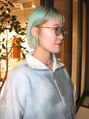 ブリーチが3センチ程伸びたベースに、明るいブラウンとペールミントを入れたルーツカラー。タイトなボブで耳にかけたりピンを使って根本をたくさん見えるようにアレンジするのもおすすめ
