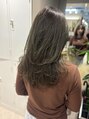 ショートバングからつながる顔まわりレイヤー。後ろも高めにレイヤーを入れて軽めのスタイル。コテでワンカールに巻いても、ランダムに巻いてもいろんな髪型にもなるhair☆動きが欲しい方はおすすめ!カラーはオリーブ感強めでお洒落を楽しみたい方に◎