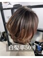 白髪率70%塊白髪90%投稿しているスタイルは、全て1年以上通ってくださっている常連のお客様です。店は素材を育てながら、白髪をデザインし、頭皮をケアしていくブランドです。1回のご来店で完成するのではなく、ベースを育ててからのスタイル例です。