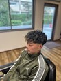 バズニグロです!上は坊主にしてパンチパーマを当て下はスキンフェードに!セットも簡単でそのままでもいいですし、ジェルなどを使っていただくことで艶が出て、引き締まります。