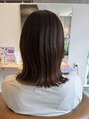自然な艶感のブラウンカラーに、毛先は軽く外ハネをプラスしたミディアムスタイル。重く見えやすい長さでも、ラインを残しつつ動きを出すことで、扱いやすく今っぽい印象に仕上げています。
