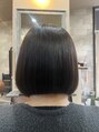 癖を落ち着かせてコンパクトボブです。カラーはグレージュです。