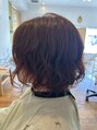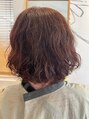 ボブスタイルにゆるめのパーマ。カラーはオレンジ系で。
