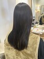 艶感ナチュラルレイヤー毛先が重たく見えすぎないように少しだけ内に入るようなラインにカットカラーは透明感を重視して、グレーブラウンに落ち着いたトーンの中にやわらかさをプラスして、光に当たるとツヤがしっかり出るように調合
