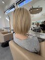 フェイスレイヤーたっぷりなショートボブ。ぱっつん気味な前髪に顔周りはスッキリとしたレイヤーで小顔効果抜群!バックは切りっぱなしにCUTして絶妙な毛量調節がポイント☆