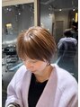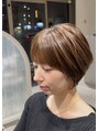 空気を含んだような柔らかい丸みが魅力のマッシュショート。トップはふんわり、襟足はすっきりタイトに仕上げることで首元を綺麗に見せ、女性らしいシルエットに。シースルーバングで抜け感をプラスし、軽やかで大人可愛い印象のショートスタイルです。