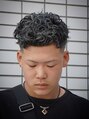 白メッシュを効かせた極道パーマ。無骨さと色気を兼ね備えたスタイルで、濡れ感を出せば一気に男らしさ全開。ワイルドさの中に品を感じる存在感あるヘア。