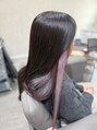 切りっぱなしのミディアムストレートに、耳まわりだけアクセントカラーをON。普段は隠せて、耳にかけた瞬間だけチラッと見える、控えめだけどオシャレな抜け感カラーです。