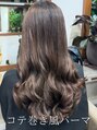 艶感カラー×コテ巻き風パーマ