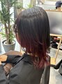いつもデザインカラーを楽しまれてるお客様です。ブリーチした部分の色が抜けてきていたので、根元は暗く、毛先には赤を入れました!