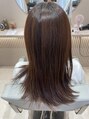 淡く透けるピンクで柔らかいツヤ髪に。髪質改善トリートメントで、カラー後も手触りさらさら。光をまとったような上品な艶と、ほんのり色っぽいピンクで大人可愛い印象に仕上げます。