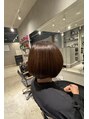 丸みのあるショートボブに、長めのサイドバングで大人のやさしさをプラス。耳掛けでスッキリ見せつつ、白髪は自然にカバー。乾かすだけでまとまりやすく、毎日のスタイリングも簡単な上品スタイルです♪