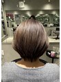 白髪率80%以上の髪を活かした脱白髪染めカラー。暗く隠すのではなく、自然なグレーカラーに整えることで柔らかく上品な印象に。ショートスタイルと合わせることで立体感が出て、伸びてきても境目が気になりにくいデザインです♪