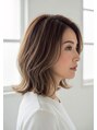 細かく入れたハイライトで立体感と動きのあるスタイルに。ベースカラーになじむ自然なコントラストで、派手すぎず上品な仕上がりです。巻いた時にも動きが出て、透明感とツヤを引き出してくれるデザインカラーです。
