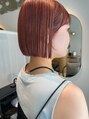 顎ラインに合わせてフラットなラインでカットしたミニボブです。サッとオイルをつけるだけで可愛いスタイルです(^^)カラーはブリーチあり、オレンジベージュ♪
