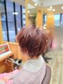 頭の丸みに合わせてショートヘアにカットしました!耳かけするとスッキリ、下ろすと切り込んだ前髪がマッシュショートに見えたり、変化を楽しめるデザインになっています(*^^*)
