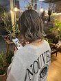 デザインブリーチをしてからグレー系のカラーを施します。カットは重めのボブがベースです。