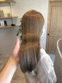 水素カラーを使用した髪質改善カラーで、艶と透明感を引き出したプラチナベージュ。赤みを抑えたやわらかな色味が、ロングヘアをより上品で軽やかな印象に。