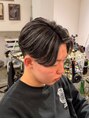 ハイライトカラー メッシュ センターパート テーパーフェード