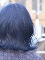 少し濃いめのネイビーカラースタイル。1ブリーチ+カラーの髪色なので挑戦しやすいです。暗めの色だけど透明感があり上品にも見えるスタイルなので初めてのブリーチスタイルなどにオススメ。