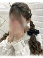 【編み込みツインテ】大きく表編みをして、毛先は細かく量産巻き♪同じスタイルにしたい方、ぜひ私にお任せください!Instagram @y_0224._.uu ×の日、営業時間外はDMからご予約可能です♪