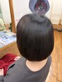 白髪染め(イチ・ゴカラー)+ 髪質改善(トリートメント)!定期的な白髪染めでパサついていた髪でしたが白髪染めのたびに髪質改善をすることで今では朝からアイロンをかける必要がなくなら楽チンです♪と教えてくださいました!朝の時間は貴重ですよね!
