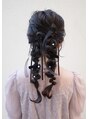 - ヘアセット+あみ下ろしアレンジ+リボン/パール飾り付け