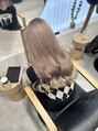 透明感たっぷりのホワイトミルクティーカラーに、顔周りレイヤーをプラスした垢抜けスタイル◎ 小顔効果と抜け感を同時に叶え、ストレートでも巻き髪でも自然な動きが出る万能ヘアに。ケアブリーチと髪質改善トリートメントを組み合わせる