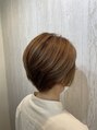 襟足が刈り上げ風でスッキリしたスタイルになります。カラーはハイライトを入れて、明るめで柔らかい印象のカラーにしてます!【 TELAHIAR妙典】