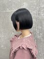 黒ぱっつんボブデザインカラー/インナーカラー/ケアブリーチ/リタッチ/ハイトーンカラー/トリートメント/レイヤーカット/ウルフカット/ショートボブ/ダブルカラー/レディースカット/渋谷
