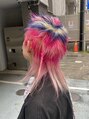 ネオンピンク×ブルーのデザインショートウルフ