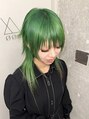 グリーンウルフデザインカラー/インナーカラー/ケアブリーチ/リタッチ/ハイトーンカラー/トリートメント/レイヤーカット/ウルフカット/ショートボブ/ダブルカラー/レディースカット/渋谷