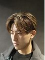 茶金ハイライト/外国人風カラー メンズカット/フェザーパーマ