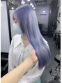 他店ブリーチ修正と白っぽく色落ちするシルバーブルー。塗り分けによりブリーチ3回です。青系の色味は失敗すると緑っぽくなりやすいのでスタイリスト選びがとても重要になります