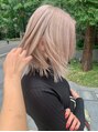 リタッチ+全体を弱いブリーチ+必要な箇所にのみ必要な強さのブリーチを塗布しベース修正を行い、ピンク