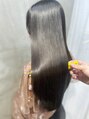 リンゴ幹トリートメントで髪の芯から補修し、毛先までなめらかなツヤ髪に。カラーは赤みを抑えた透明感カラーで、暗めでも重く見えず、柔らかく上品な印象に仕上げています。指通り・まとまり・ツヤ感を重視した、人気の美髪ロングスタイルです。