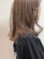 ブリーチなしでできるまろやかなミルクティーカラー*今より少し明るくしたい方や髪を色素薄めに柔らかく見せたい方におすすめです♪くびれ外はねミディアムにもピッタリなスタイルです☆彡