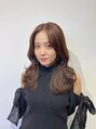 顔周りにレイヤーを入れつつ大きめのゆるふわカールをプラス。透明感のあるアッシュグレージュカラーで、重さを残しつつ柔らかい雰囲気を演出しています。大人っぽさと可愛さを両立させた万能スタイルです。