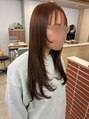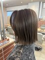 赤みをしっかり抑えた透明感グレージュカラー。ブリーチなしでも重たく見えない柔らかい質感に仕上げました。毛先は切りっぱなしのラインでまとまりを出しつつ、自然な艶を引き立てています。