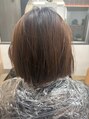 赤みを抑えながら、くすみすぎない柔らかグレージュ。光に当たるとほんのり透ける質感で、重く見えやすいボブも軽やかな印象に。色落ちまで綺麗に楽しめる配色です。